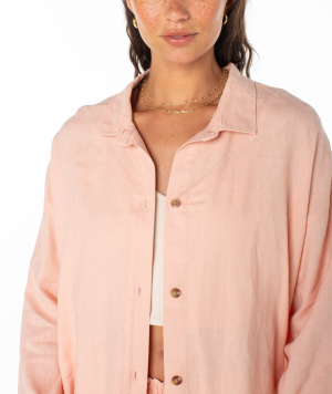 Relax all day long in the Morning Time button up. Crafted from a linen blend. this versatile piece is easy to style over any top or flaunt on its own.