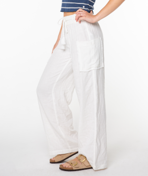 Channel all the summer vibes in the Sea Goldie pants. Featuring a relaxed fit. a drawstring waist and a cargo pocket. these gauze pants are a perfect addition to your summer rotation.